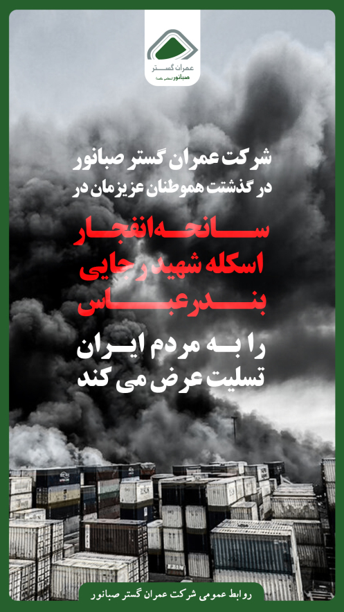 شرکت عمران گستر صبانور در گذشت هموطنان عزیزمان در سانحه انفجار اسکله شهید رجایی بندرعباس را به مردم ایران تسلیت عرض می کندمیکند
