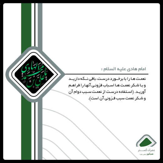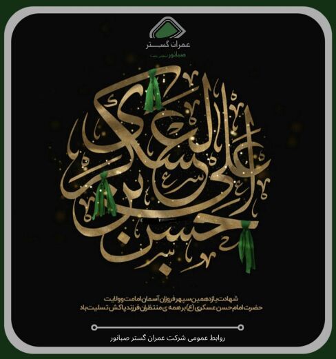 مدیرعامل شرکت عمران گستر صبانور، شهادت حضرت امام حسن عسگری (علیهالسلام) را به جامعه اسلامی تسلیت عرض می نماید یاد آن امام بزرگوار، چراغ راه صبر، ایمان و خدمت خالصانه به انسانهاست